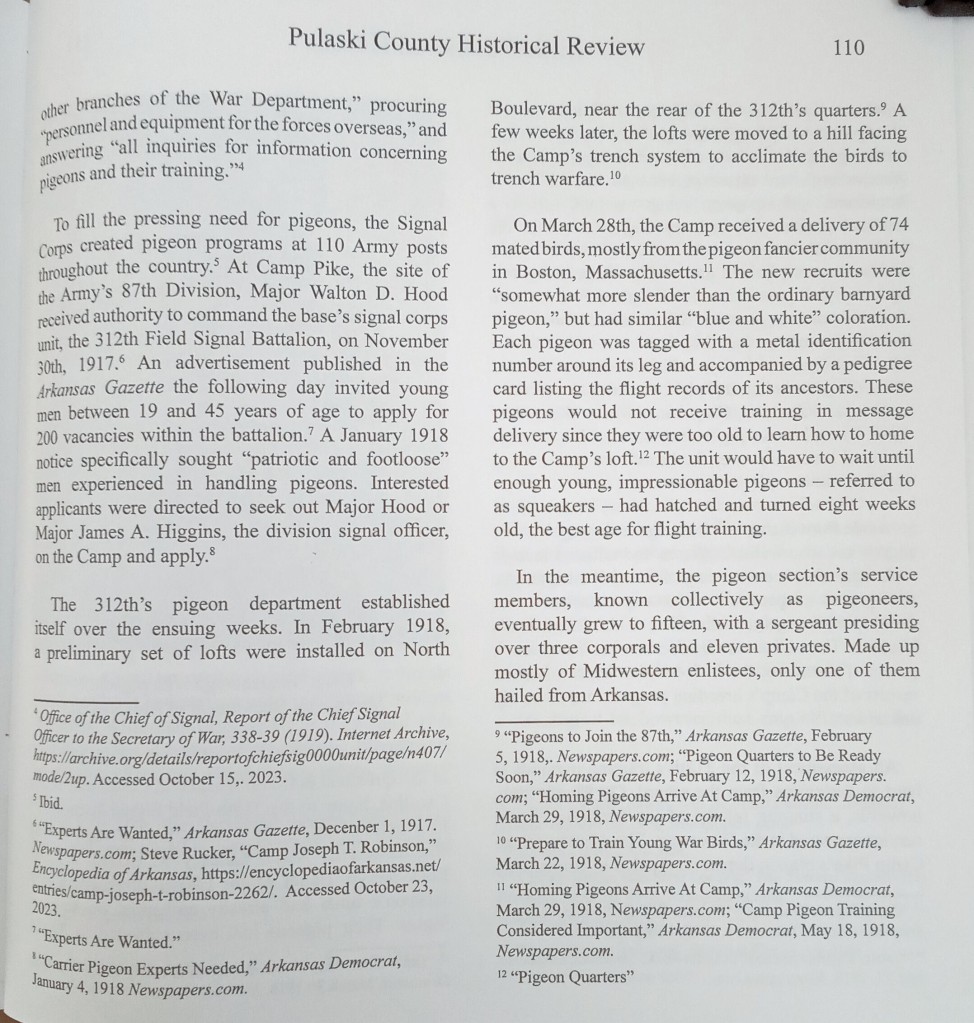 • “Little Feathered Heroes”: Camp Pike’s Pigeon Service, 1917-1919