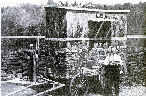 Camouflage methods were eagerly adopted by military pigeon services in both World Wars. The primary focus was hiding the pigeons’ lofts. Large and conspicuous, mobile lofts near the front line were susceptible to attacks by enemy aircraft. Stationing them near a building or under a tree helped, but that wasn’t always an option if the units were in an open field. A simple way to conceal a coop was to paint it entirely olive-drab green. For more advanced techniques, a painter could cover the coop in a melange of brown and green hues, or try to accurately reflect the natural surroundings. In one widely-circulated photograph, a mobile loft has been painstakingly painted to match a stone fence and vegetation in the background. But those tasked with concealing lofts had to be careful that their efforts didn’t confuse the birds. During preparations for the Battle of the Somme, for instance, an army of artists worked feverishly to camouflage the British Army’s equipment. Apparently, they were too good—the concealed coop was so convincing, the pigeons failed to return to their loft.